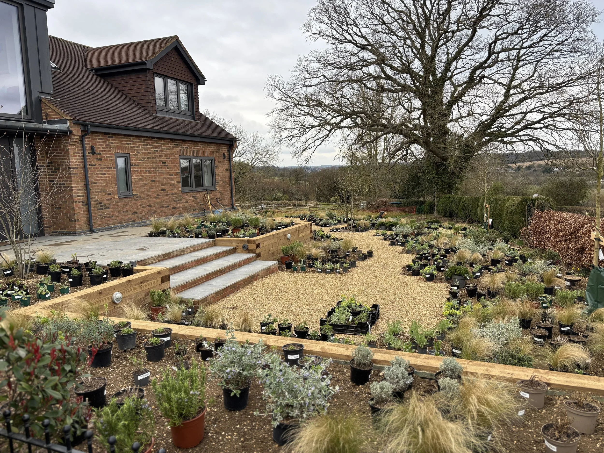 The BuildExperienced local builders levelled the site, removed and stored the existing top soil, prepared the ground, built the pathways, steps and raised beds over a 4 week period. Large amounts of gravel were added into the soil to break up the clay and create the ideal growing medium for the drought resistant planting scheme.
